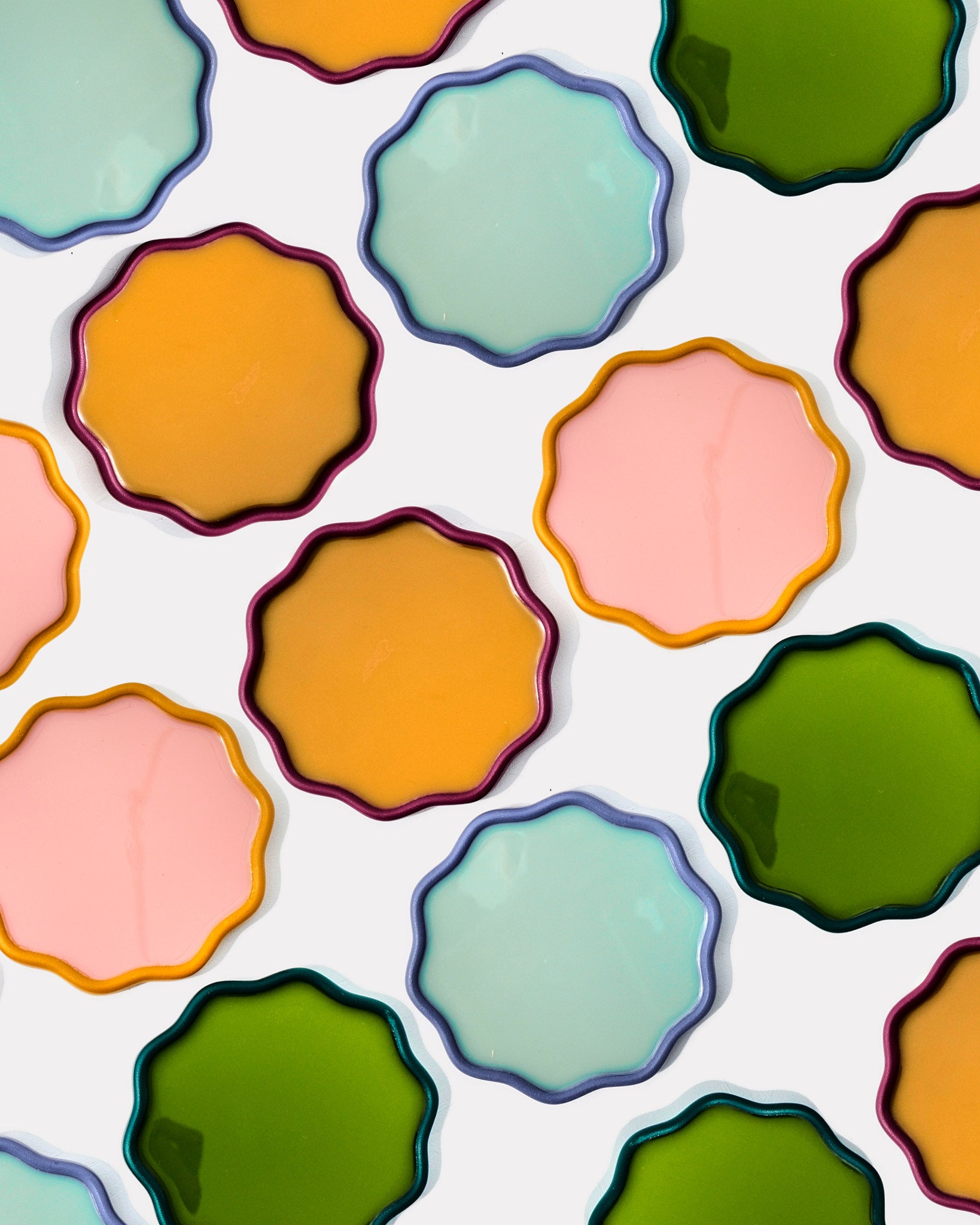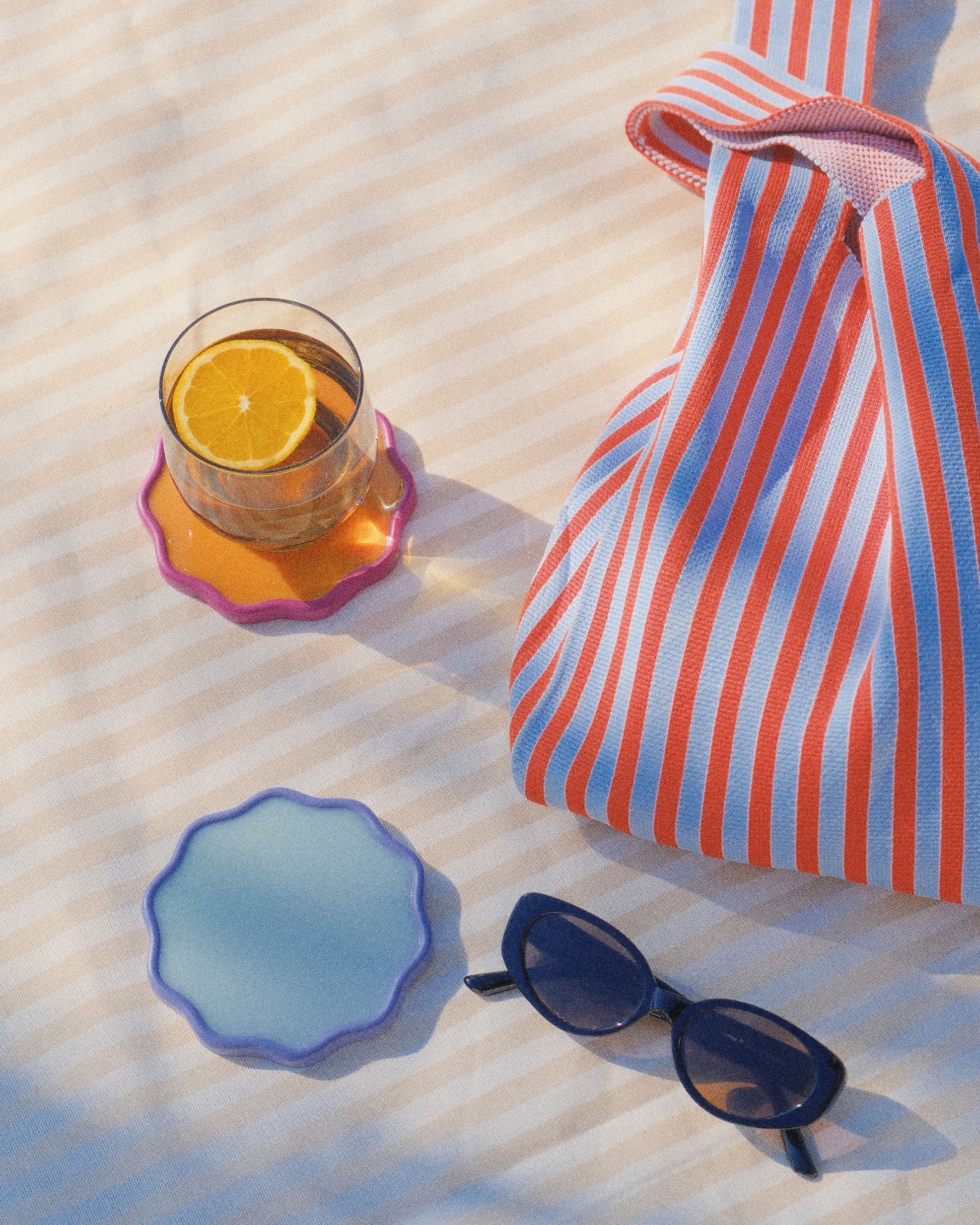Crafted for both function and design, these coasters protect your surfaces while adding a pop of color to your setup. Sold in a set of two, they are available in four vibrant colorways: Avocado, Blueberry, Passionfruit, and Guava.